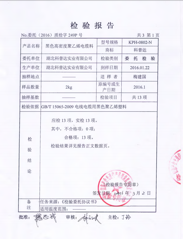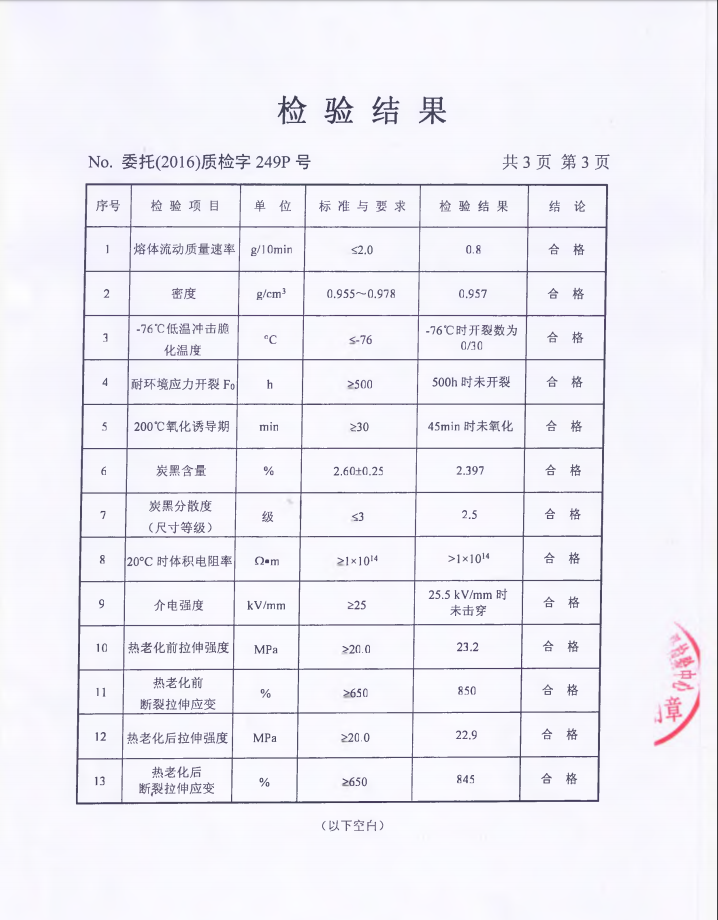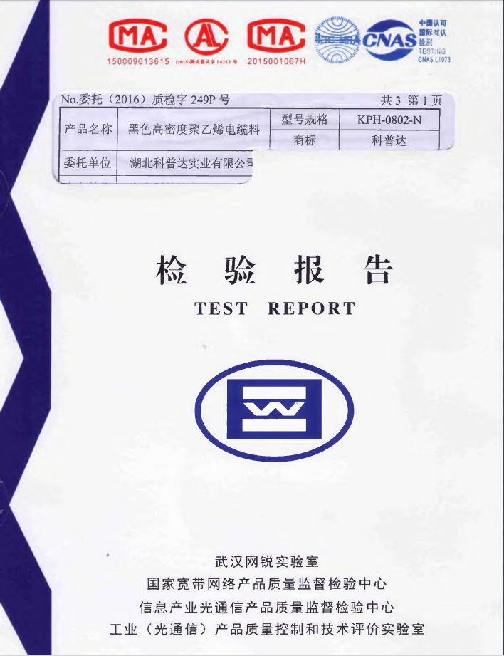 上一篇:2016年高密度聚乙烯護套料檢測報告(KPH-0802)