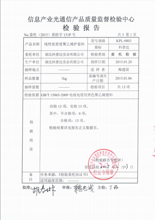 科普達產(chǎn)品主要有各種光纜護套料,榮獲湖北省名牌產(chǎn)品,守合同重信用企業(yè)。 榮獲多種國家資質(zhì)認證包括:ISO9001質(zhì)量管理體系認證、ISO14001環(huán)境管理體系及OHSAS18001職業(yè)健康安全管理體系認證。...
