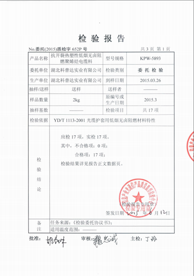 科普達(dá)產(chǎn)品主要有各種光纜護(hù)套料,榮獲湖北省名牌產(chǎn)品,守合同重信用企業(yè)。 榮獲多種國家資質(zhì)認(rèn)證包括:ISO9001質(zhì)量管理體系認(rèn)證、ISO14001環(huán)境管理體系及OHSAS18001職業(yè)健康安全管理體系認(rèn)證。...