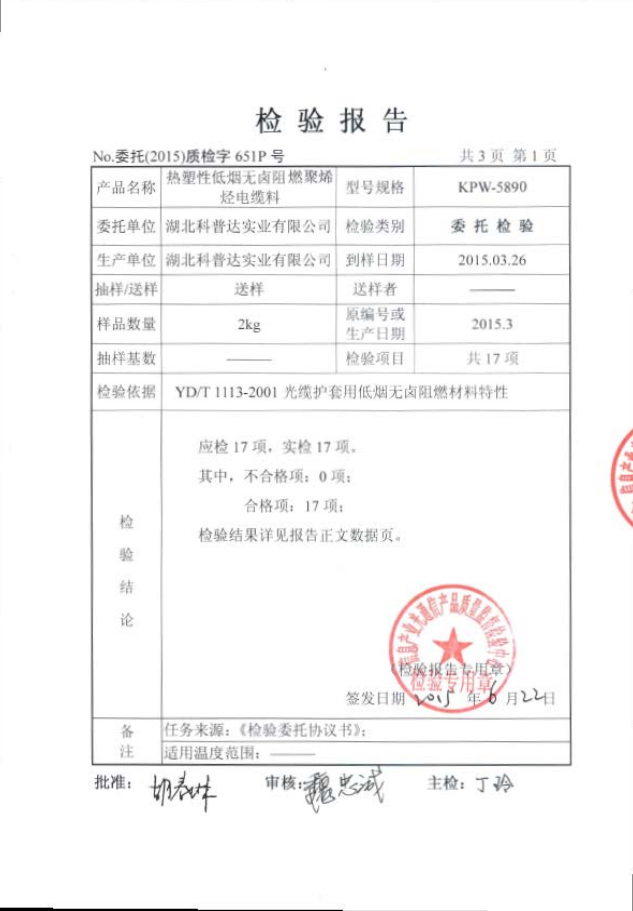 科普達產品主要有各種光纜護套料,榮獲湖北省名牌產品,守合同重信用企業。 榮獲多種國家資質認證包括:ISO9001質量管理體系認證、ISO14001環境管理體系及OHSAS18001職業健康安全管理體系認證。...